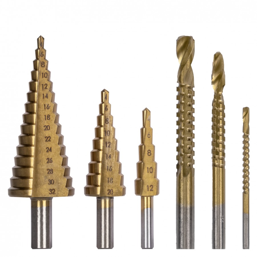 Set of straight and step drills, 6 pcs.