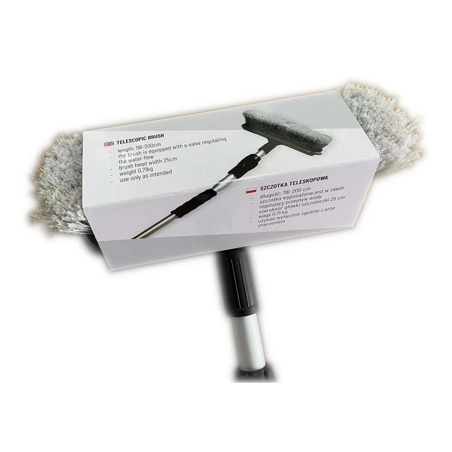 Moreover, it is made of materials: Water connector:, Handle: EVA, Telescope: Aluminium, Brush head: PP. The cable length is PP, 116-200. The product is packaged in the following configuration cart.dim.: 117x27x17,5cm, 15pcs/bulk, box.